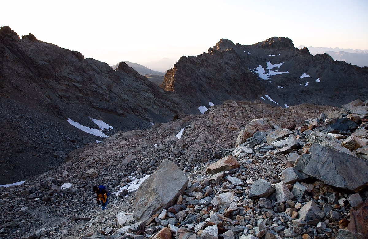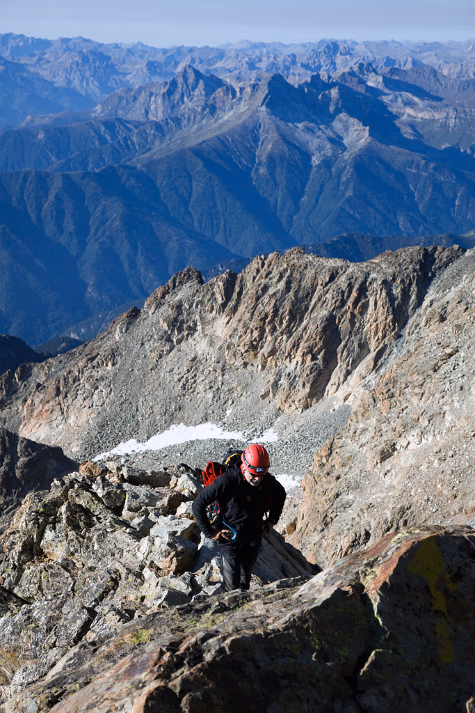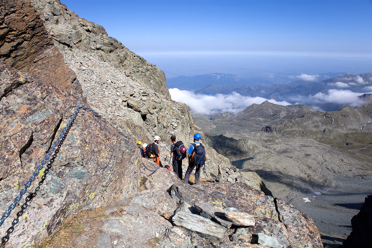 Ogni tanto si sente anche qualche sasso volare giù. Il diedro camino in discesa è la parte più difficile per via della maggiore esposizione. Rientrati al bivacco ci aspetta un estenuante traversata del vallone che riporta al passo delle Sagnette.L’ultimo tratto in salita spezza letteralmente le gambe, ho giurato che non l’avrei mai più fatto in vita mia, vedremo! Ma non è finita qui, manca ancora tutta la ferrata da fare in discesa.