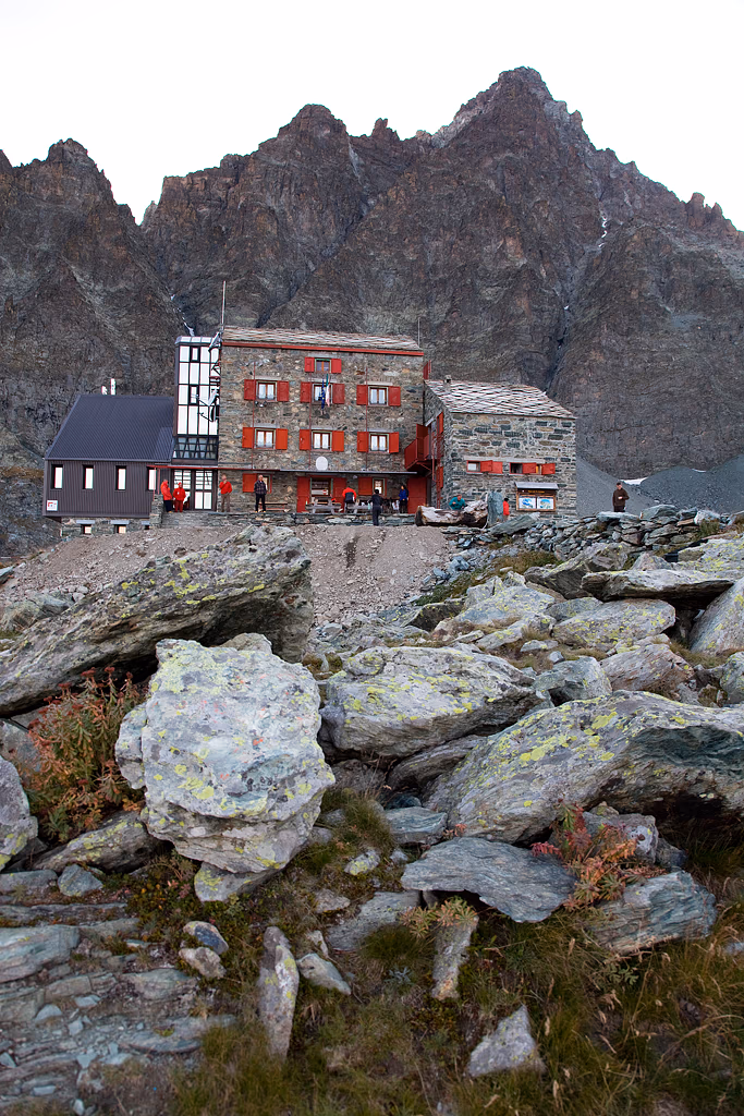 Il sentiero che porta al rifugio, agevole e ben segnato, è dominato dall’aspra parete nord del Monviso. Tagliamo a mezza costa una vecchia morena che porta a un pianoro di detriti lungo il quale si snoda l’ultimo tratto del percorso e in circa due ore arriviamo al confortevole e panoramico Rifugio. La vista sulla pianura cuneese è spettacolare, soprattutto al tramonto.