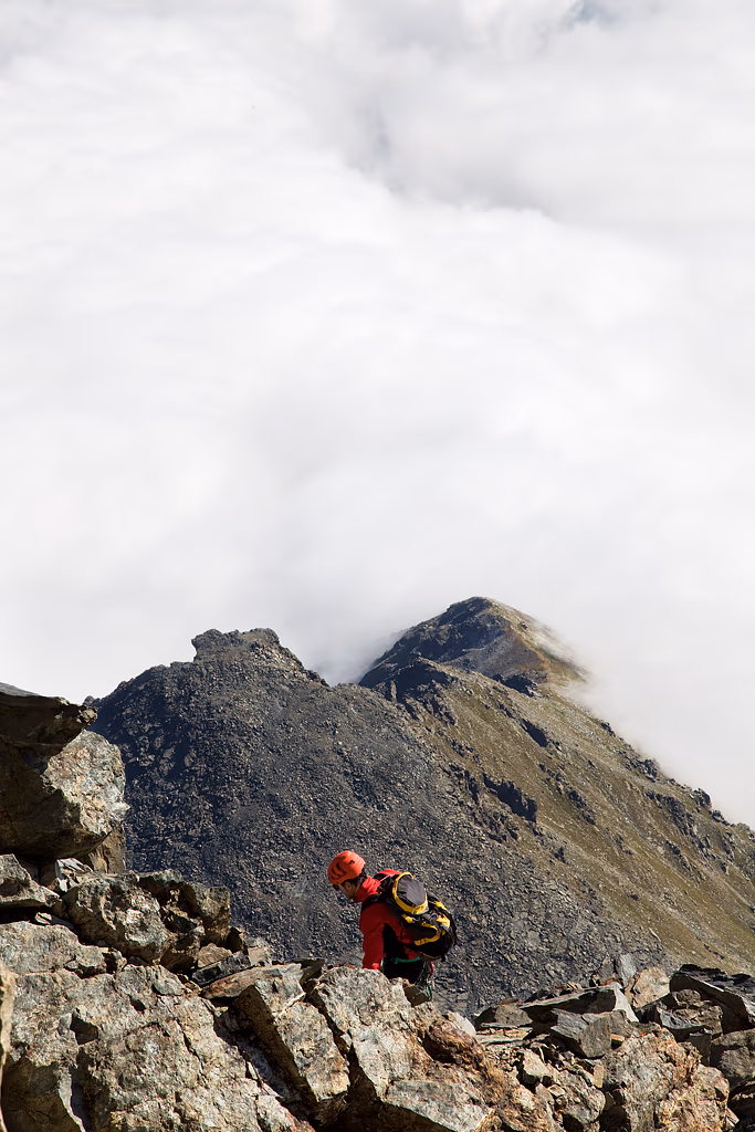 Da qui per facili roccette raggiungiamo la vetta (5h circa).Panorama grandioso, l’isolamento della cima rende tutto ancora più suggestivo, qualsiasi fatica viene ripagata da questa magnifica visione. Ora viene il difficile, la discesa! Disarrampicare è molto più complicato e faticoso, spesso inoltre ci si mette letteralmente in coda nei punti più complicati.