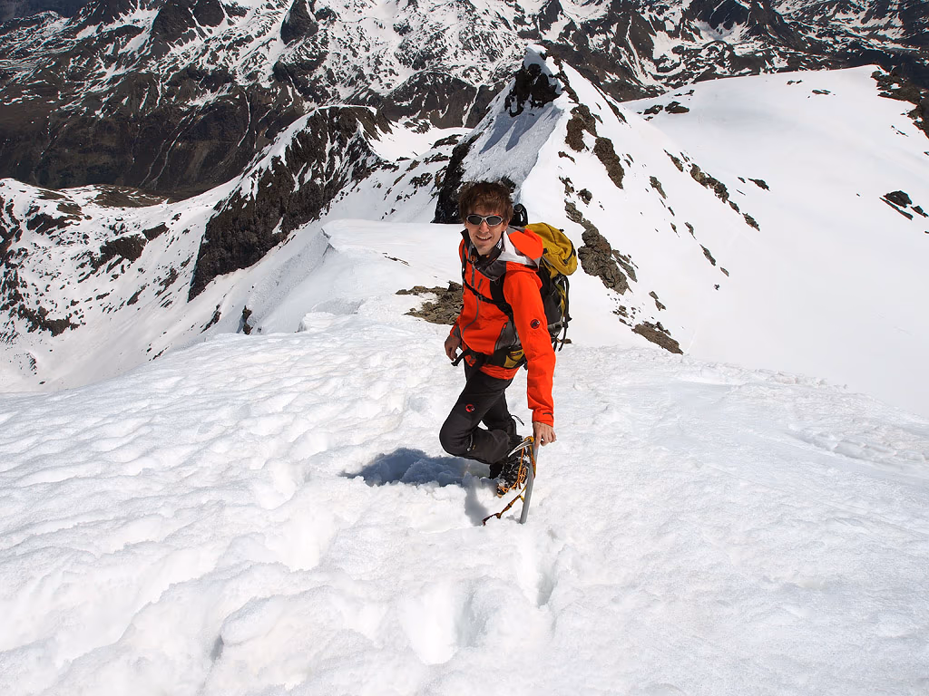 La salita non risulta difficile, ma sempre da fare con attenzione. Una distrazione potrebbe risultare fatale come sempre in montagna. Arriviamo a posare i piedi sulla cima ed a toccare la croce del Pizzo Tambò a quota 3279 m.