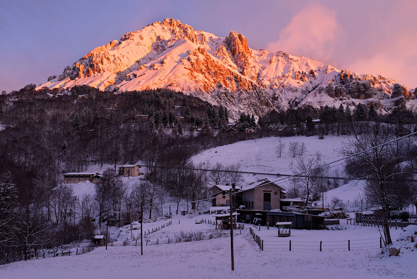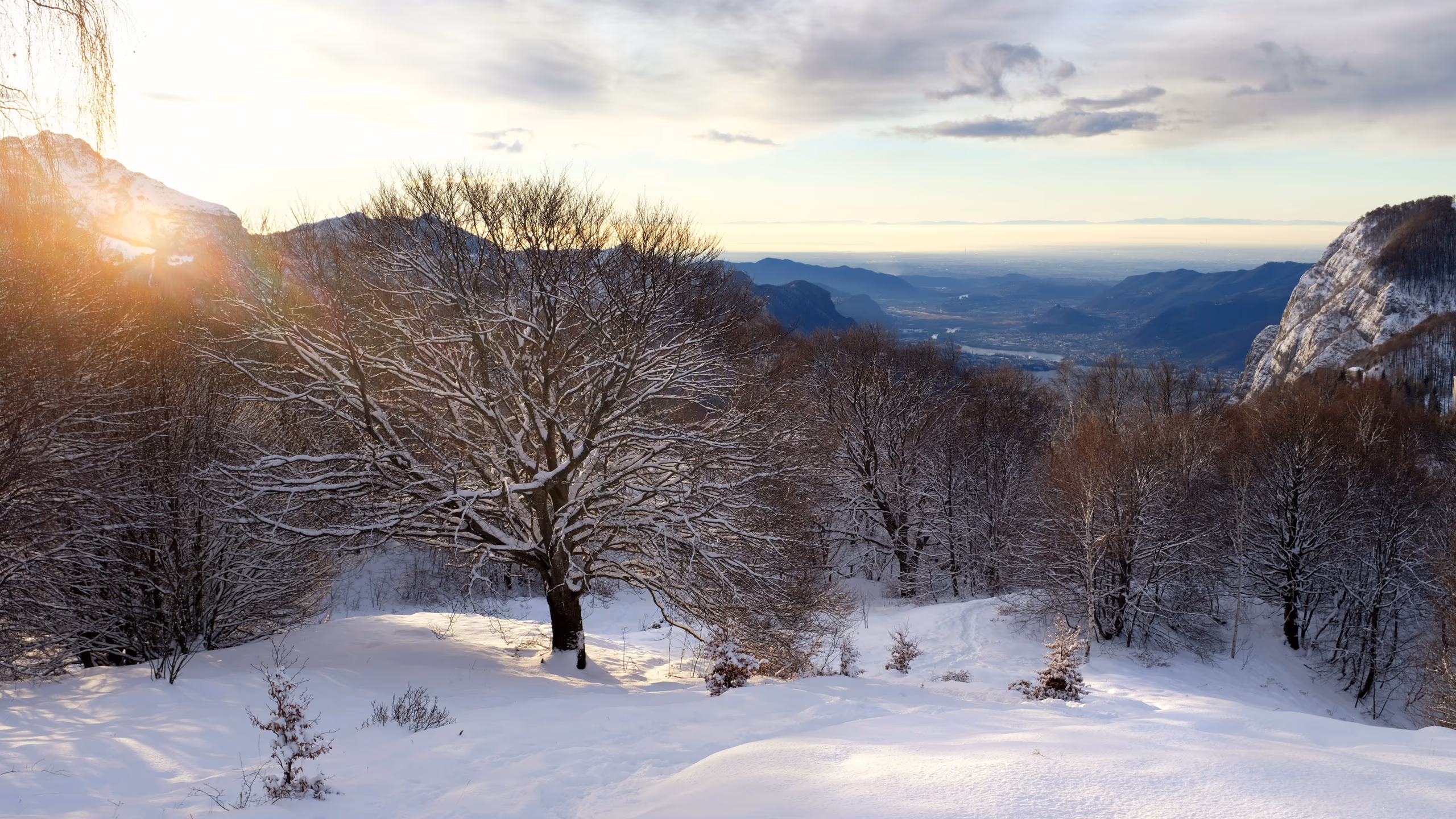 Mio papà mi propone di fare il Caimi, un canale facile, perfetto per riprendere confidenza con i ramponi. Partiamo presto per evitare la “mandria” diretta ai Piani di Bobbio. Al termine della galleria ci attende una piacevole sorpresa: 20cm di neve fresca caduti nella notte per uno sfondamento da nord. La perturbazione era stata prevista, ma di solito da nord sulle Grigne arriva poco o nulla. Lasciamo la macchina al parcheggio e iniziamo a salire lungo la stradina che sale al Rifugio Porta.