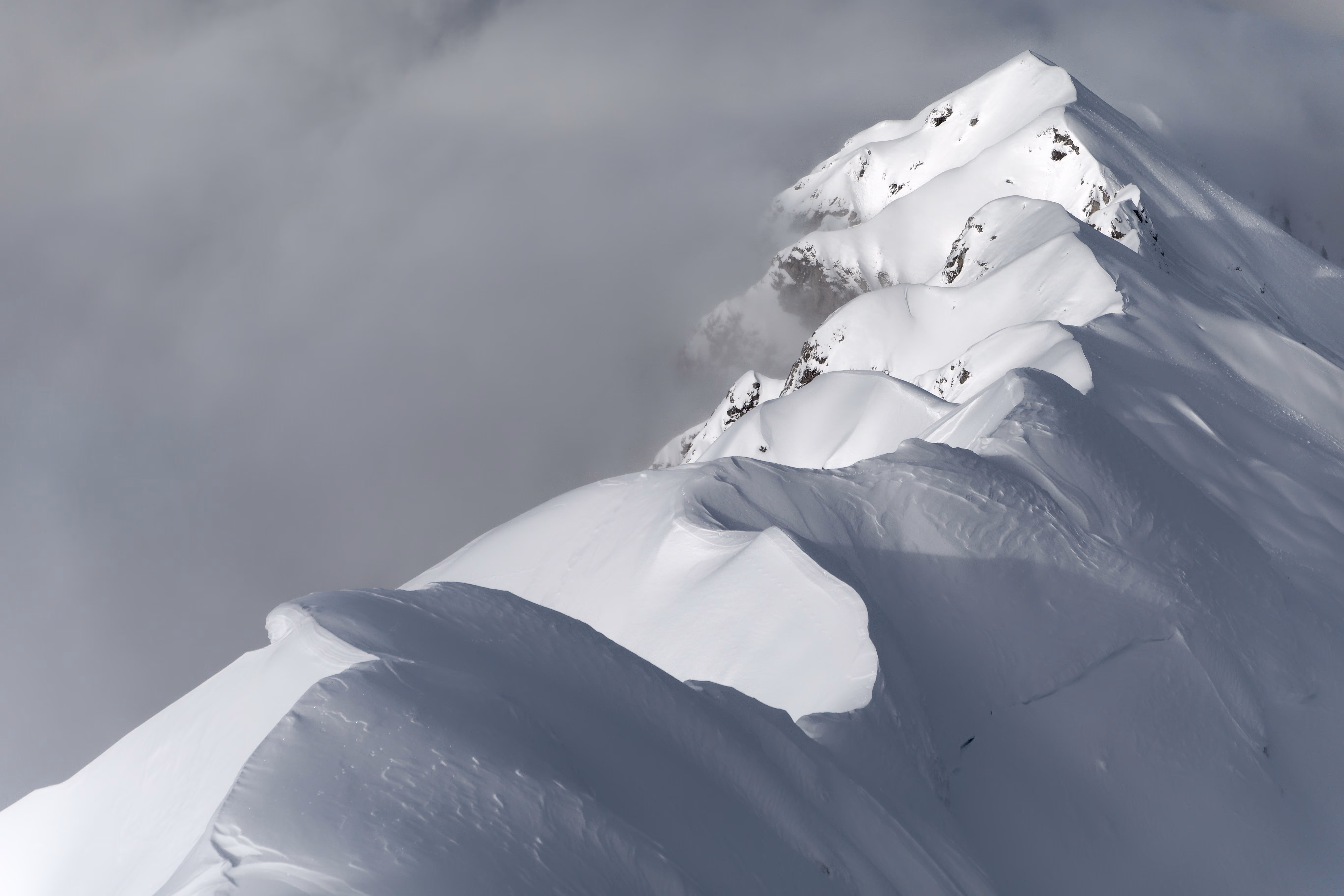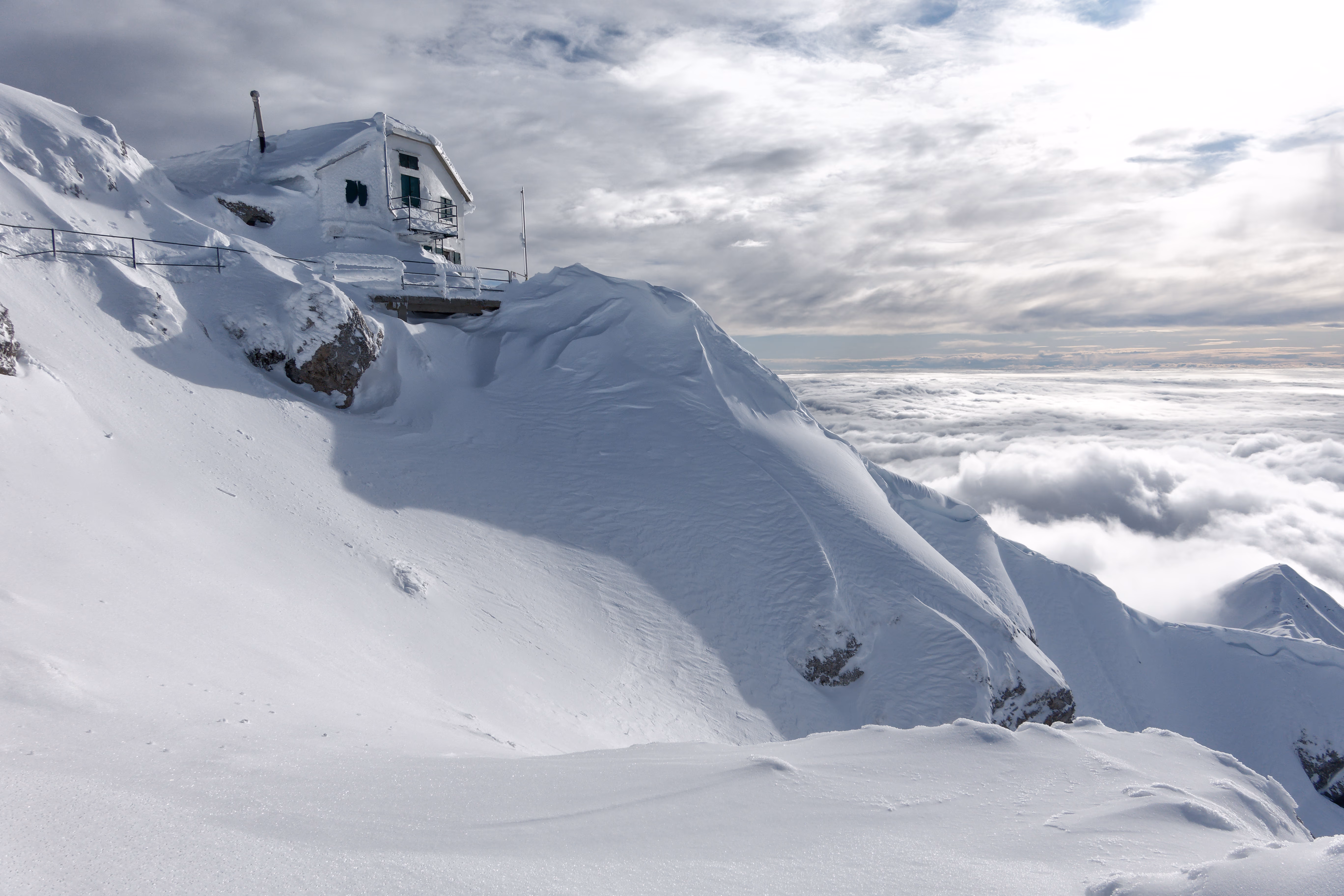 Dopo un Novembre di abbondanti nevicate, bisognava trovare il giorno giusto per salire. Giovedì è perfetto. Il giorno prima una nuova, debole nevicata, prepara al meglio la scenografia. Giornata stabile ma con nuvole basse.