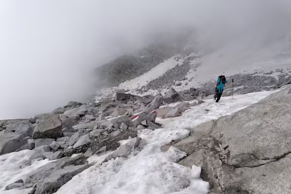 Per fortuna riusciamo a vedere il panorama prima che le nebbie tornino a farci visita. Rientro a ritroso fino al Bivacco su un ghiacciaio ancora coperto ma già in pre-agonia estiva. Nessun crepaccio avvistato, ma meglio stare attenti, soprattutto quando si passa vicino alla Vedretta di Salarno.