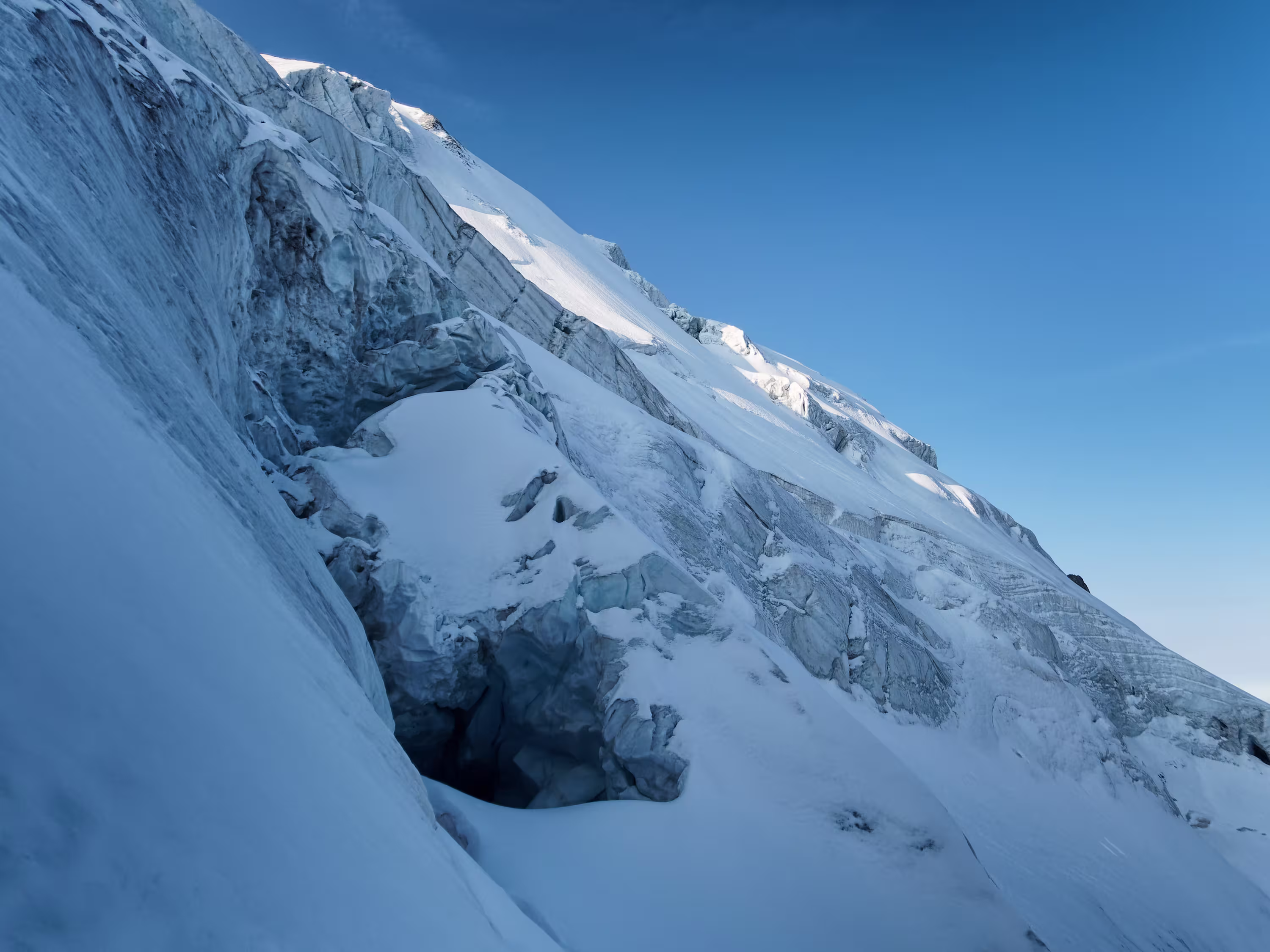 Seracchi incombenti sul primo tratto del ghiacciaio