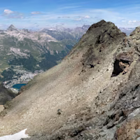 Relazione della traversata Piz Surlej - Piz Mezdì con partenza da St. Moritz Bad in senso antiorario, toccando le vette del Piz San Gian e del Piz Rosatsch