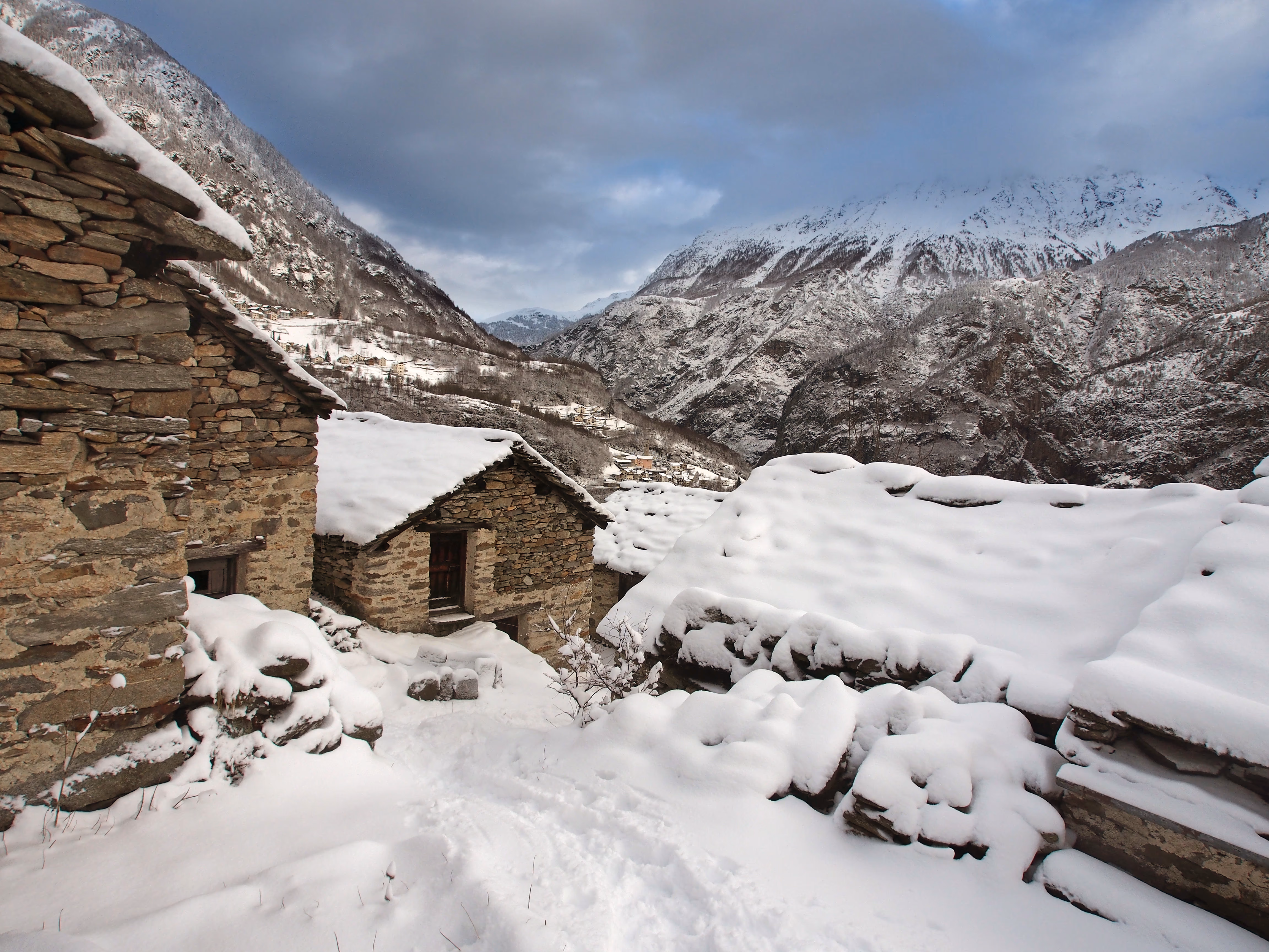 Finalmente è arrivata una bella nevicata, ci serve una meta relativamente sicura e allo stesso tempo appagante. Decidiamo di andare all’Alpe Lendine, un bellissimo alpeggio situato nel territorio di San Giacomo Filippo. Dopo la classica colazione al Moreschi arriviamo a Olmo dove parcheggiamo nei pressi della chiesa. Da qui, dopo una breve scalinata, attraversiamo il paese fino al civico 45 dove inzia la salita vera e propria. Dopo alcuni ripidi tornanti arriviamo alle Baite di Zecca dove il panorama si apre sulla Valle Spluga.
