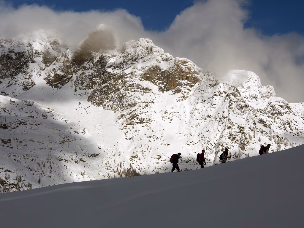 Una gita spettacolare e relativamente sicura, da fare assolutamente dopo una bella nevicata. Non c’è bisogno di partire presto, il sole arriva tardi all’Alpe, conviene essere lì all’ora di pranzo e aspettare il momento migliore. L’unico inconveniente è che il sentiero non è di facile individuazione, specialmente dopo una nevicata senza un traccia già battuta.