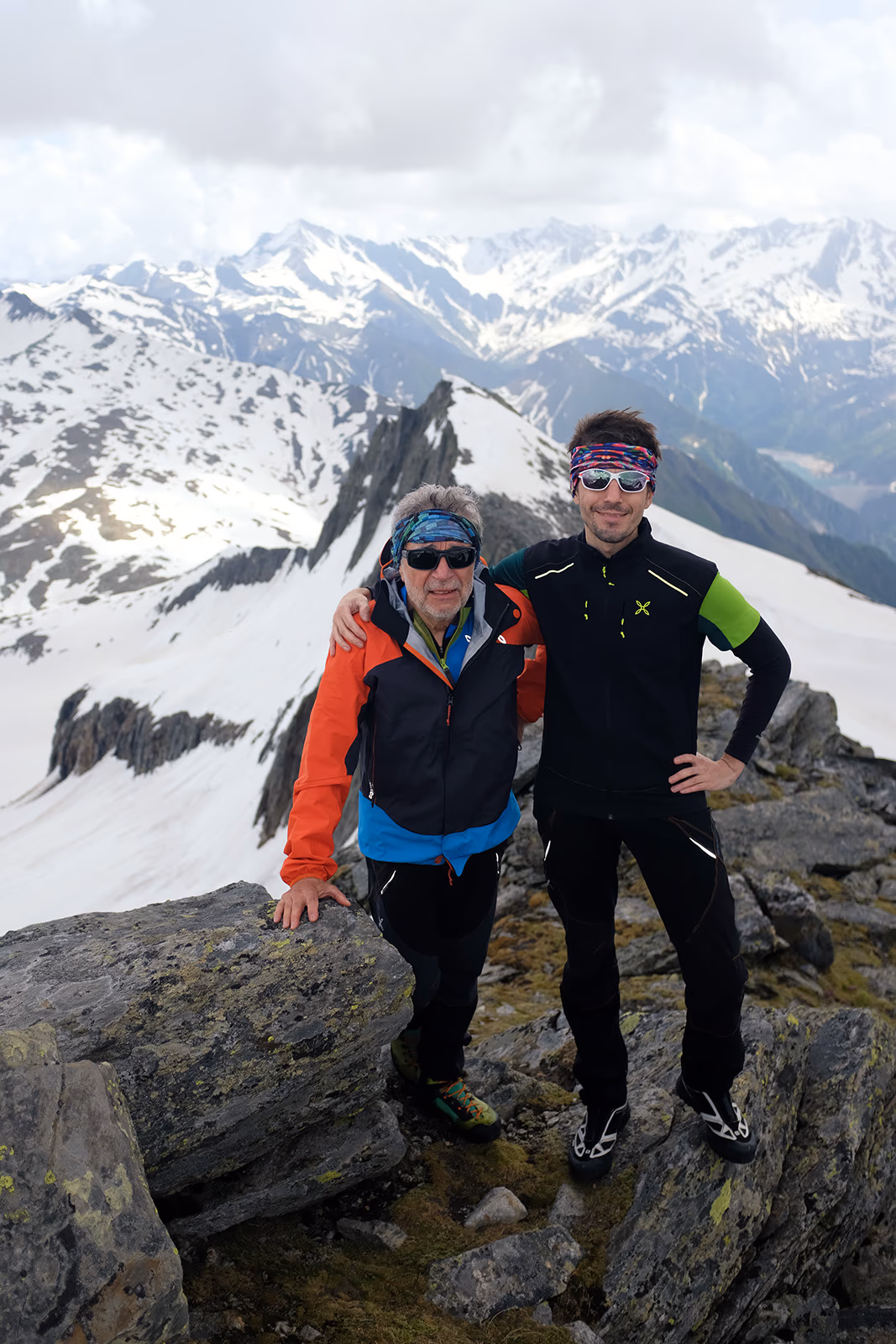 Fortunatamente il tempo ha retto, graupeln per dieci minuti appena sotto la vetta in discesa, ma nessun temporale strutturato. Ambiente severo e selvaggio, decisamente poco battuto, non abbiamo incontrato anima viva solo carcasse di camosci travolti dalle numerose valanghe. Percorso che ben si presta anche allo scialpinismo.