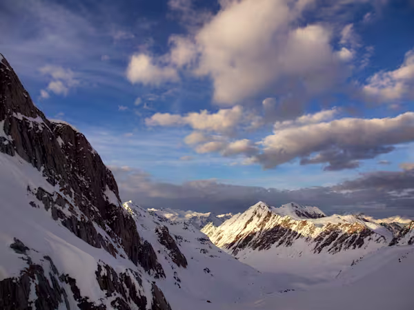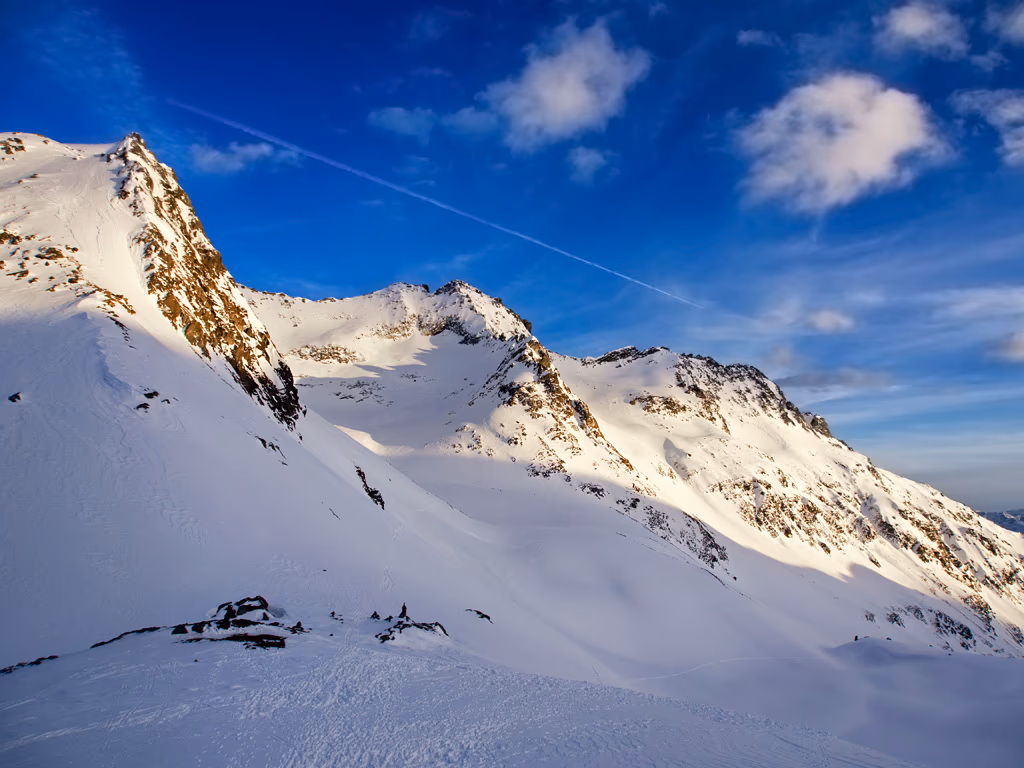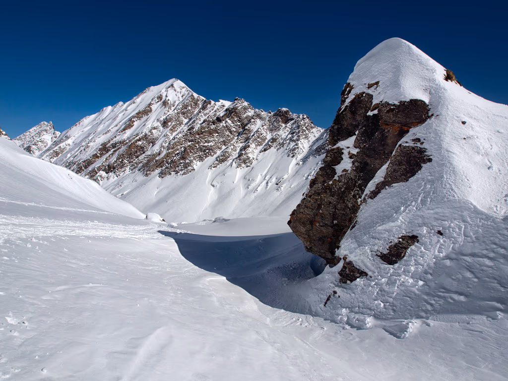 La capanna è visibile ma manca ancora più di un’ora di salita. Osserviamo in diretta due piccole valanghe a debole coesione staccatesi per via del forte riscaldamento. Siamo arrivati, rifugio molto grande e dotato di tutti i comfort, compresa una saletta riscaldata per fare asciugare scarponi e pelli. Unico neo: 9€ una bottiglia da un litro e mezzo d’acqua, meglio darsi alla più economica birra.