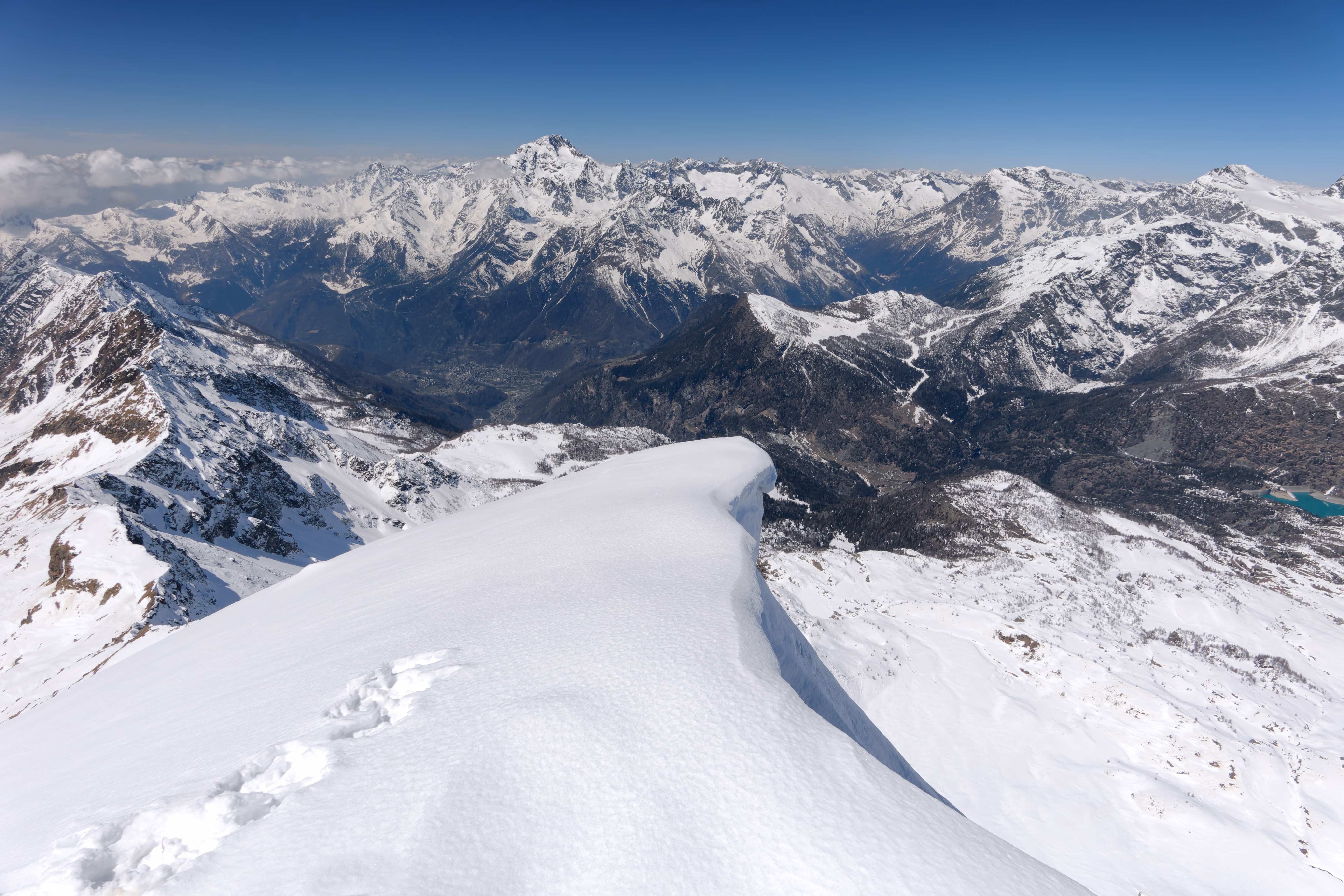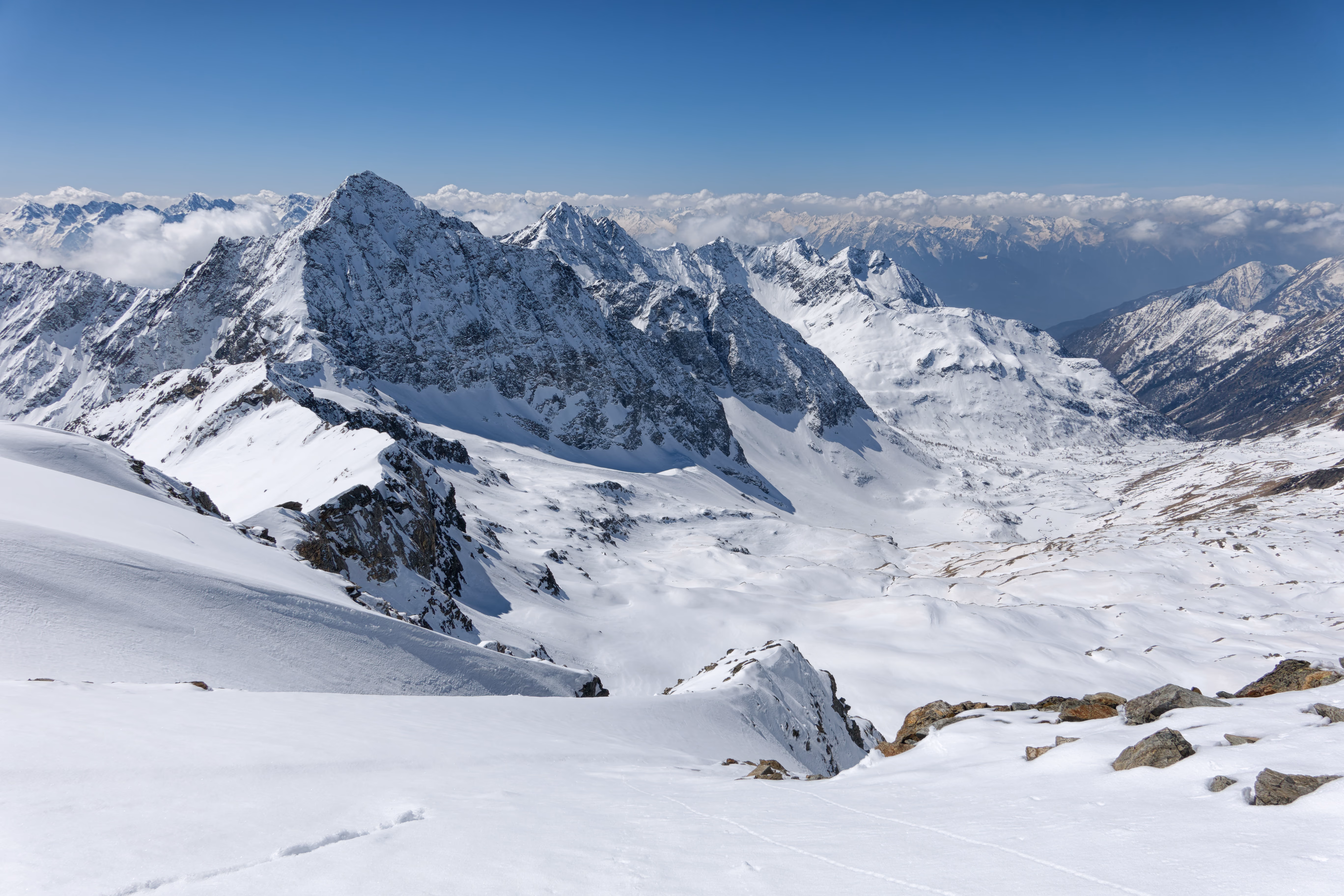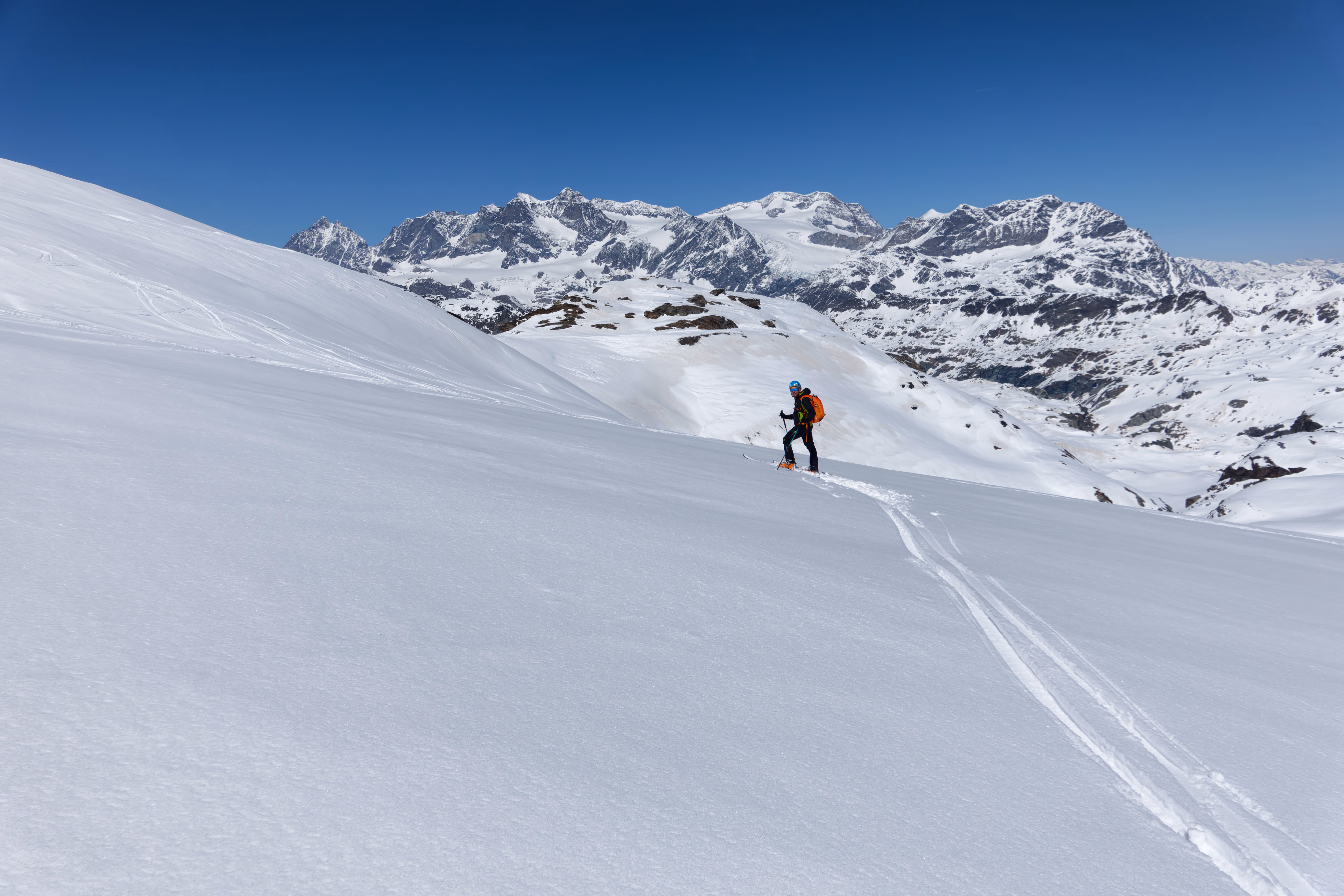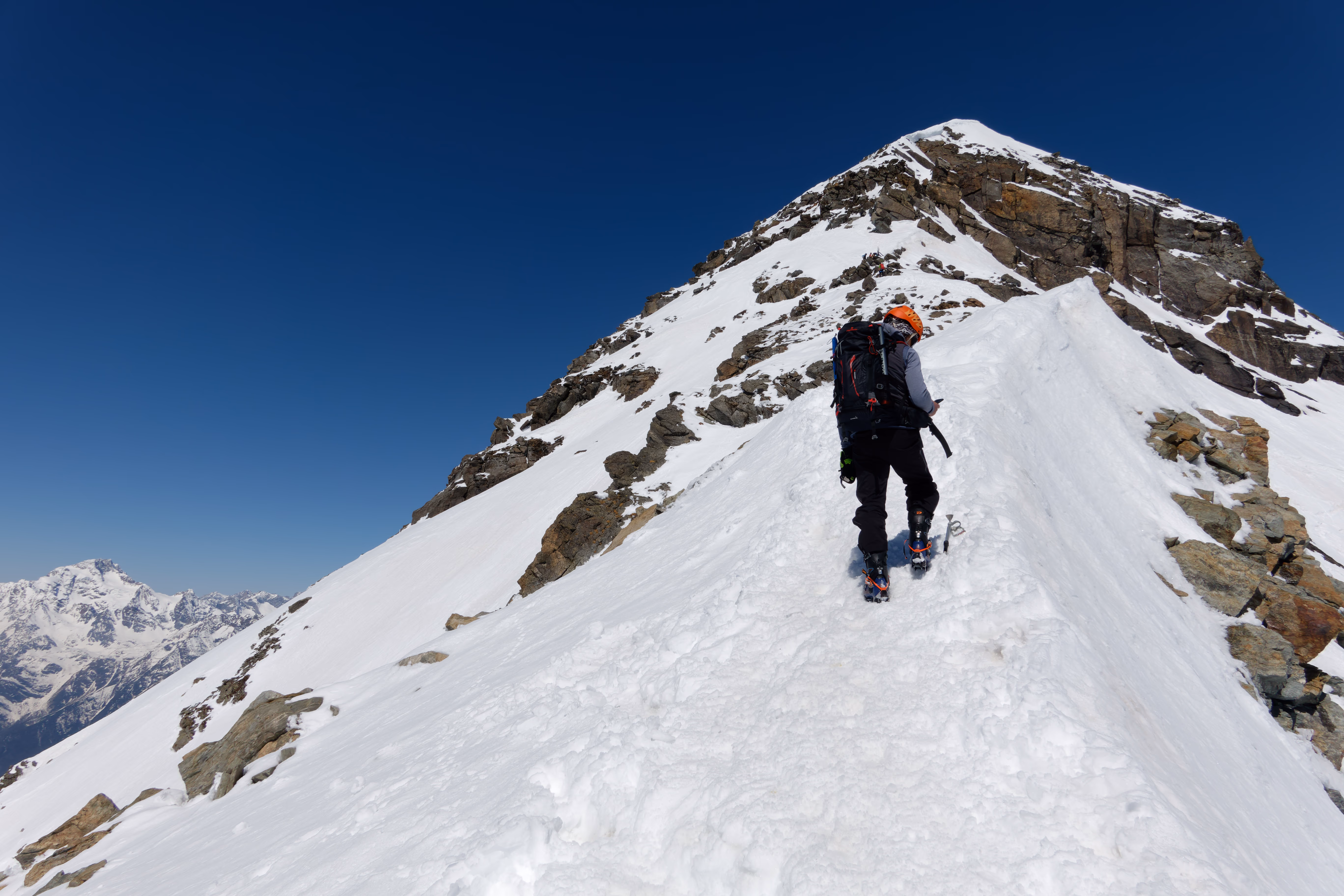 Salita alla vetta super battuta e ancora tutta innevata, si arriva velocemente in vetta. Panorama grandioso, soprattutto sulla Cima di Painale, devo assolutamente salirla quest’estate. Discesa con gli sci dalla cresta non difficile ma da fare con attenzione.