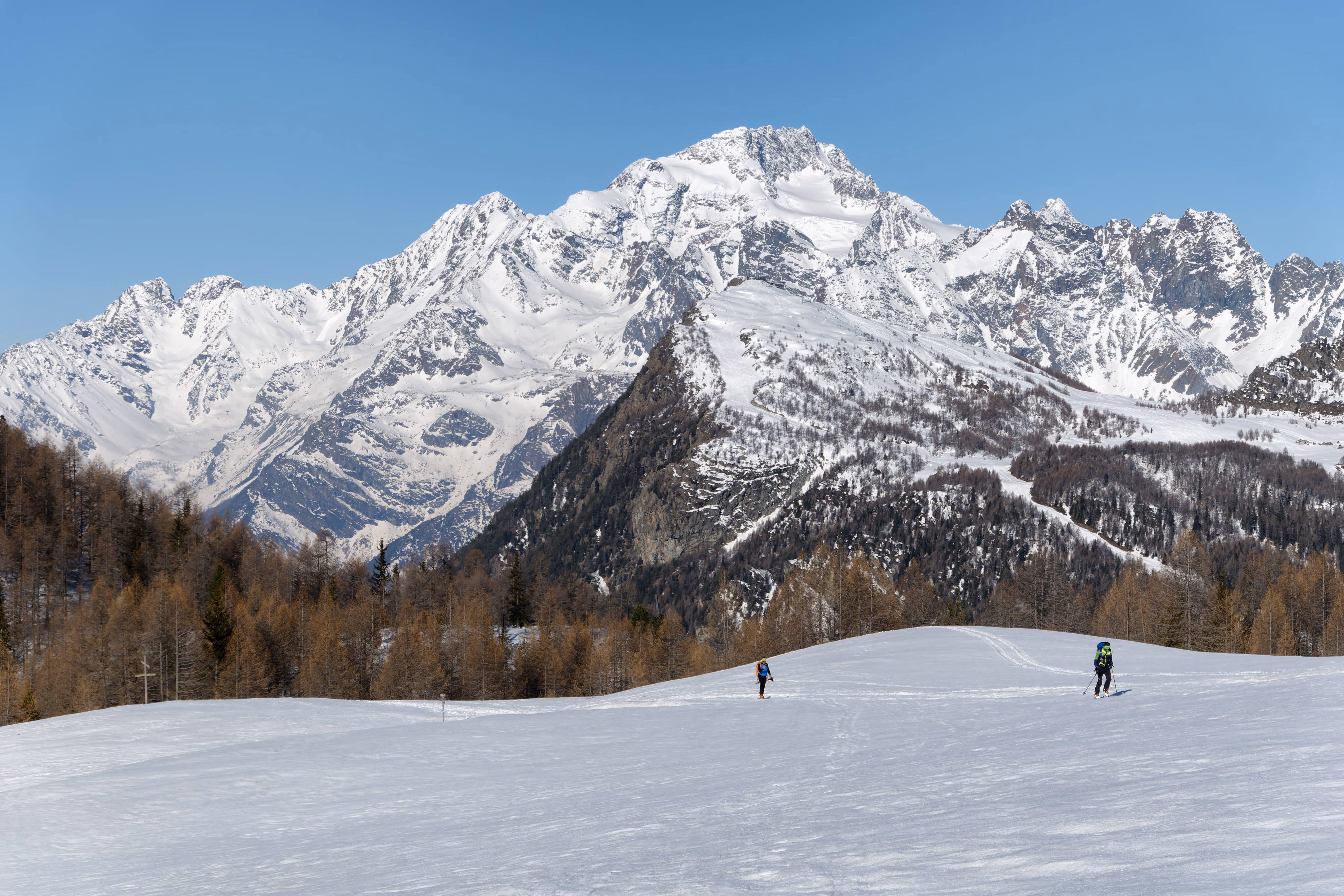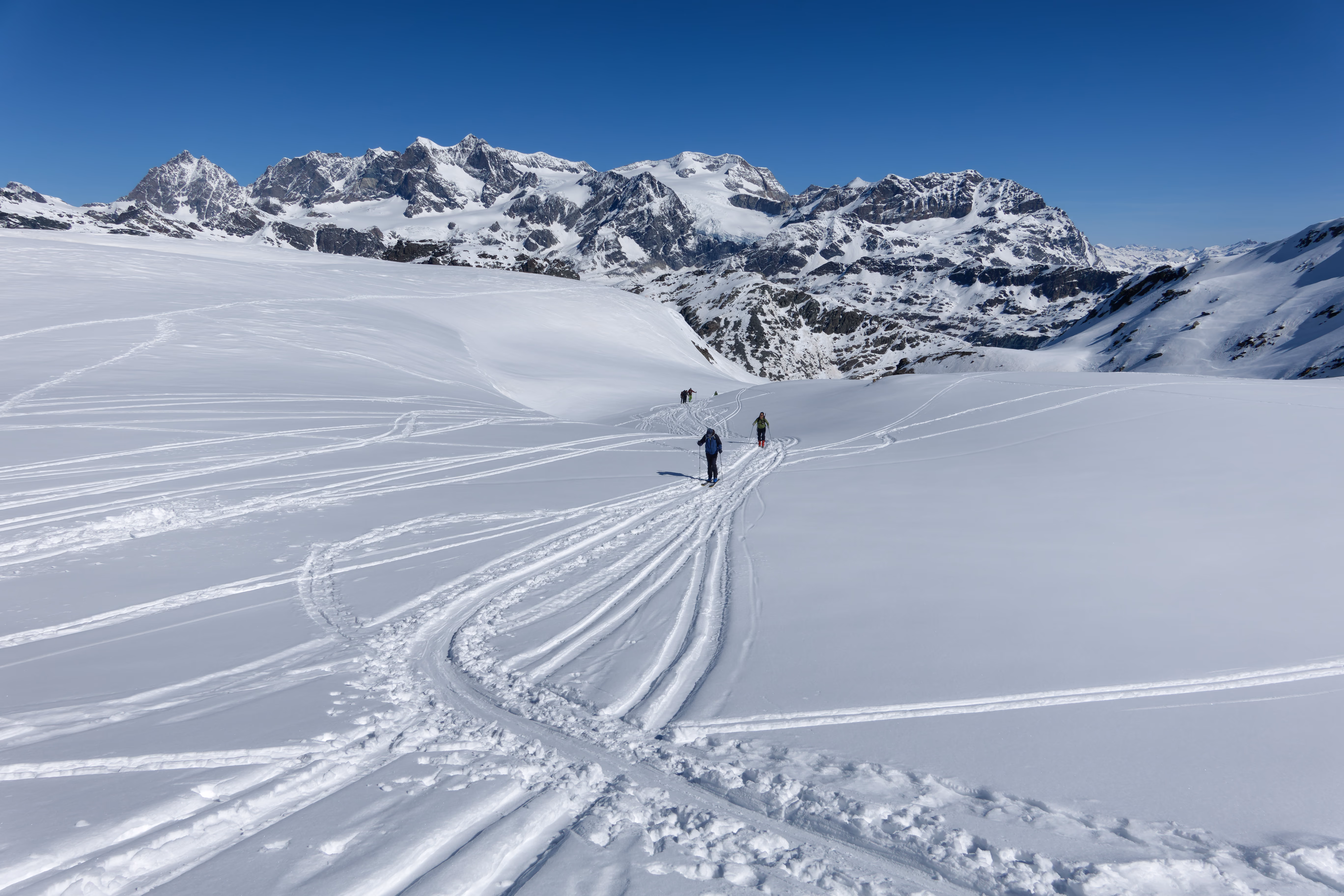 Scialpinismo al Pizzo Scalino con partenza da Campo Moro. Salita dal Cornetto e rientro dal Passo di Campagneda.