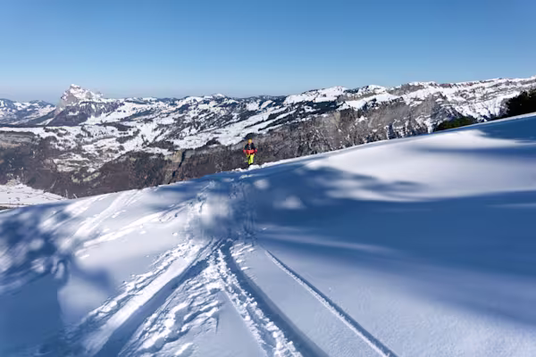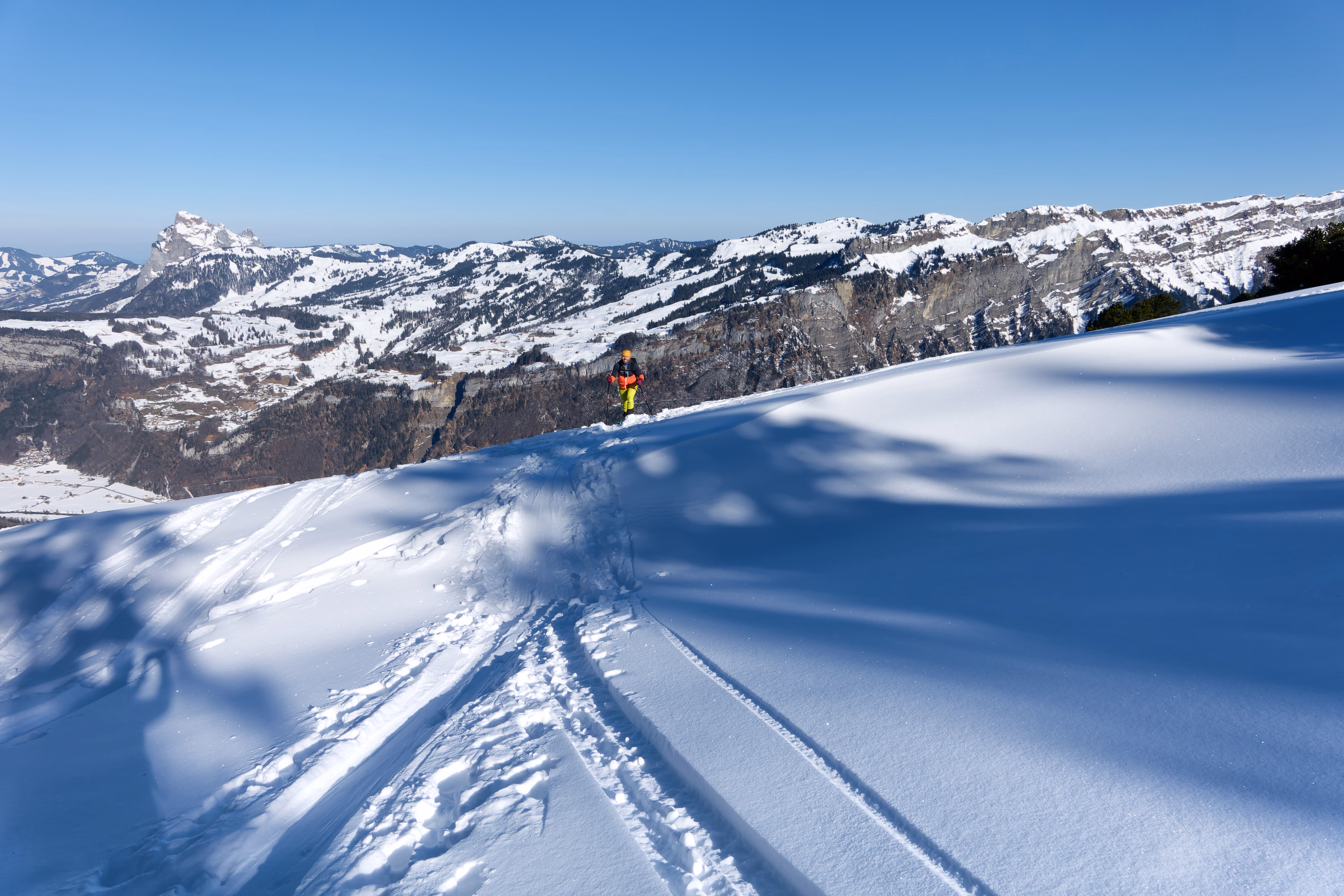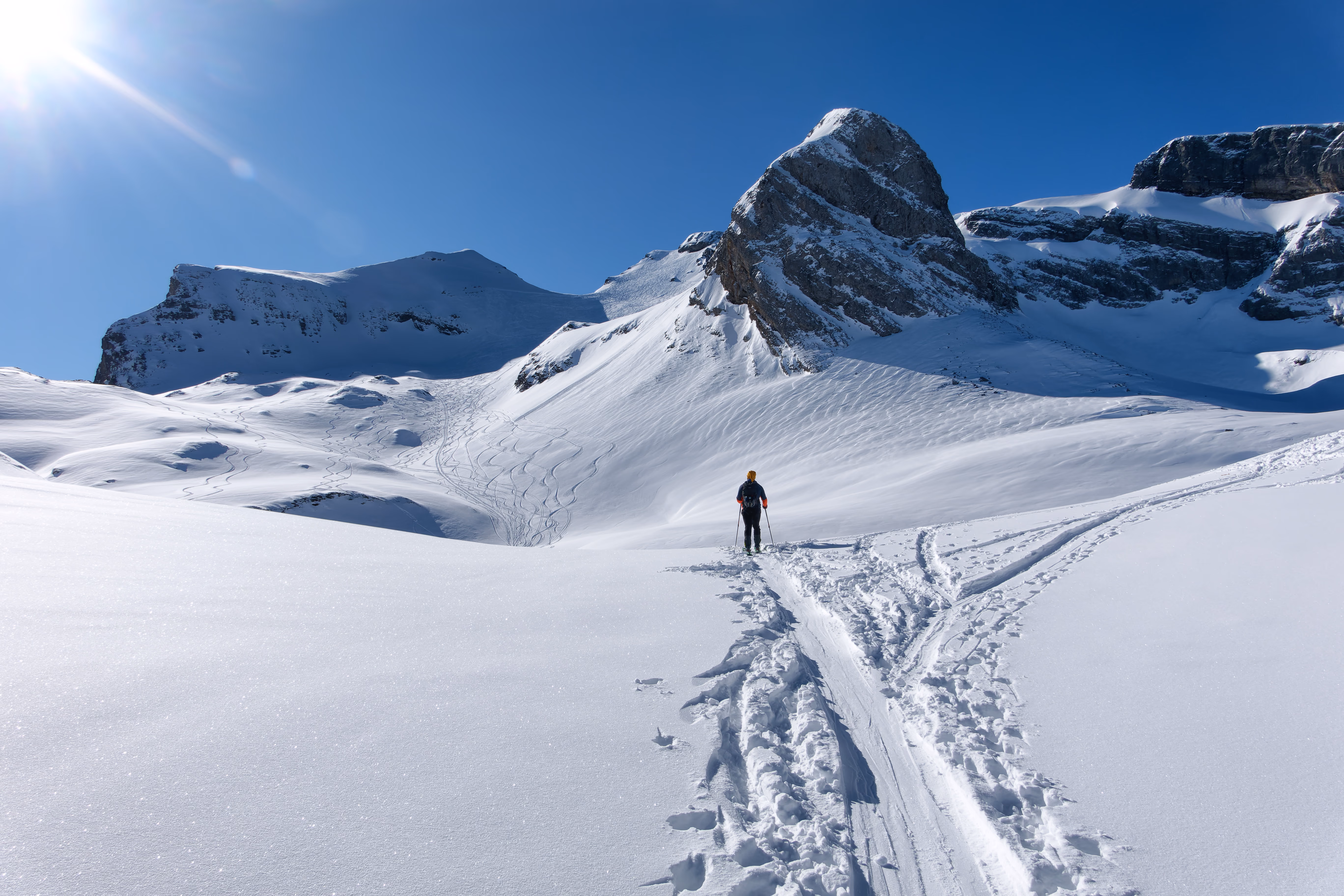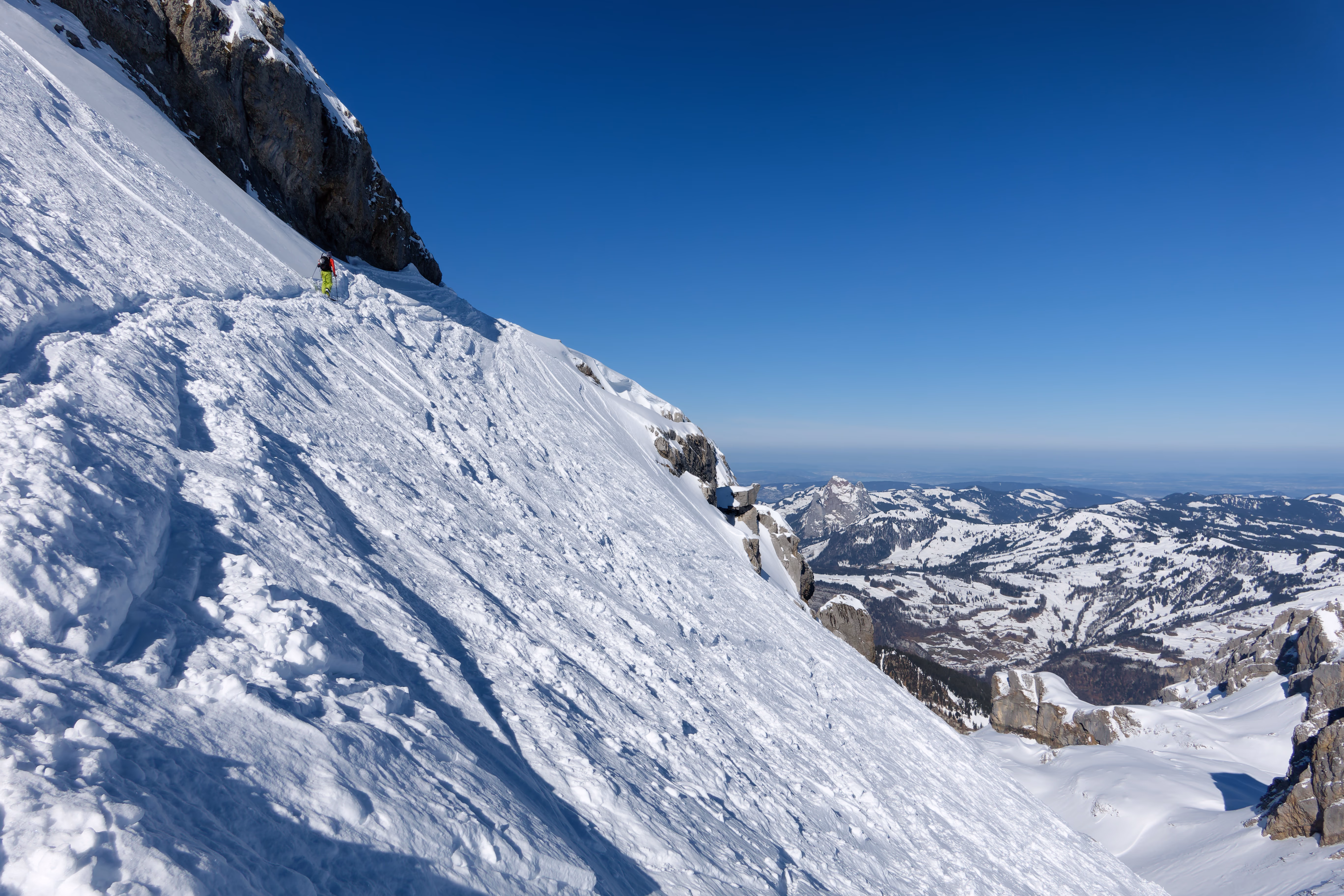 Bisogna puntare le ripide pareti dell’Achslenstock e imboccare il canalone alla sua base. Non risalite il primo vallone, quello conviene farlo in discesa. Al termine del vallone possiamo ammirare per la prima volta la cima. Il pendio finale è già solcato da numerosi passaggi e non desta preoccupazione. In generale è una meta molto frequentata, ma quasi tutti salgono dalla Lidernenhütte. Conquistarsi le proprie curve è il modo più bello per salire questa cima.