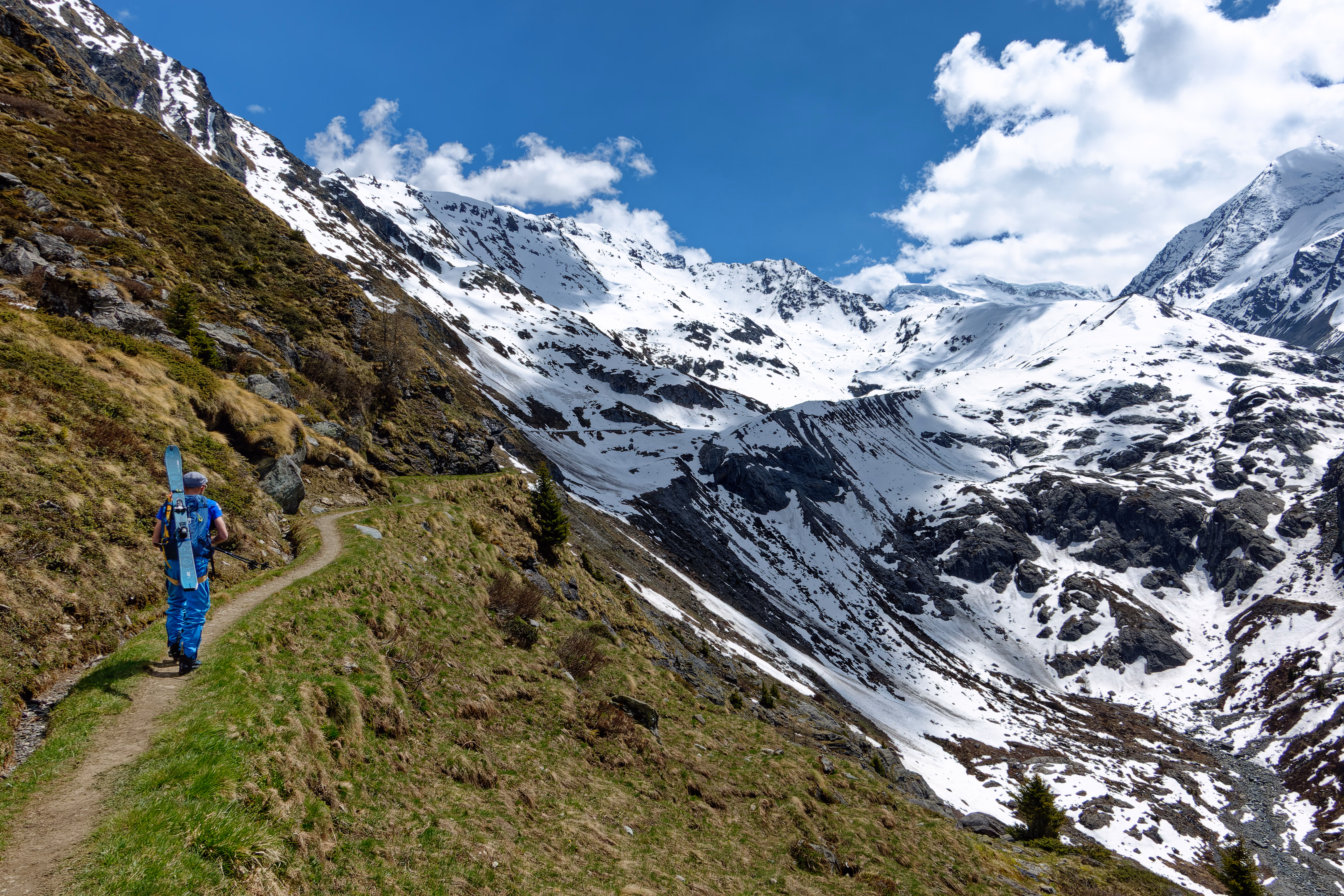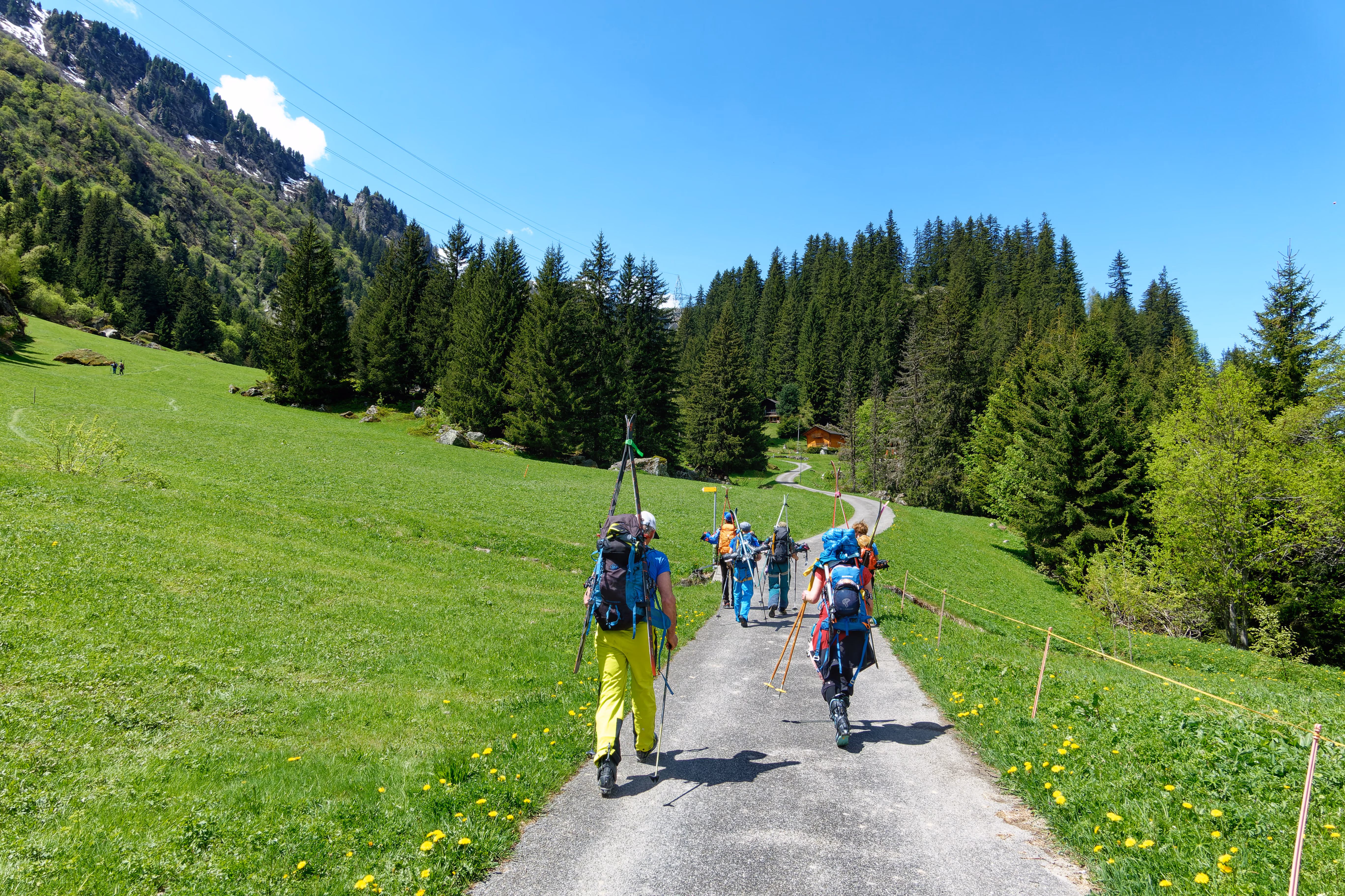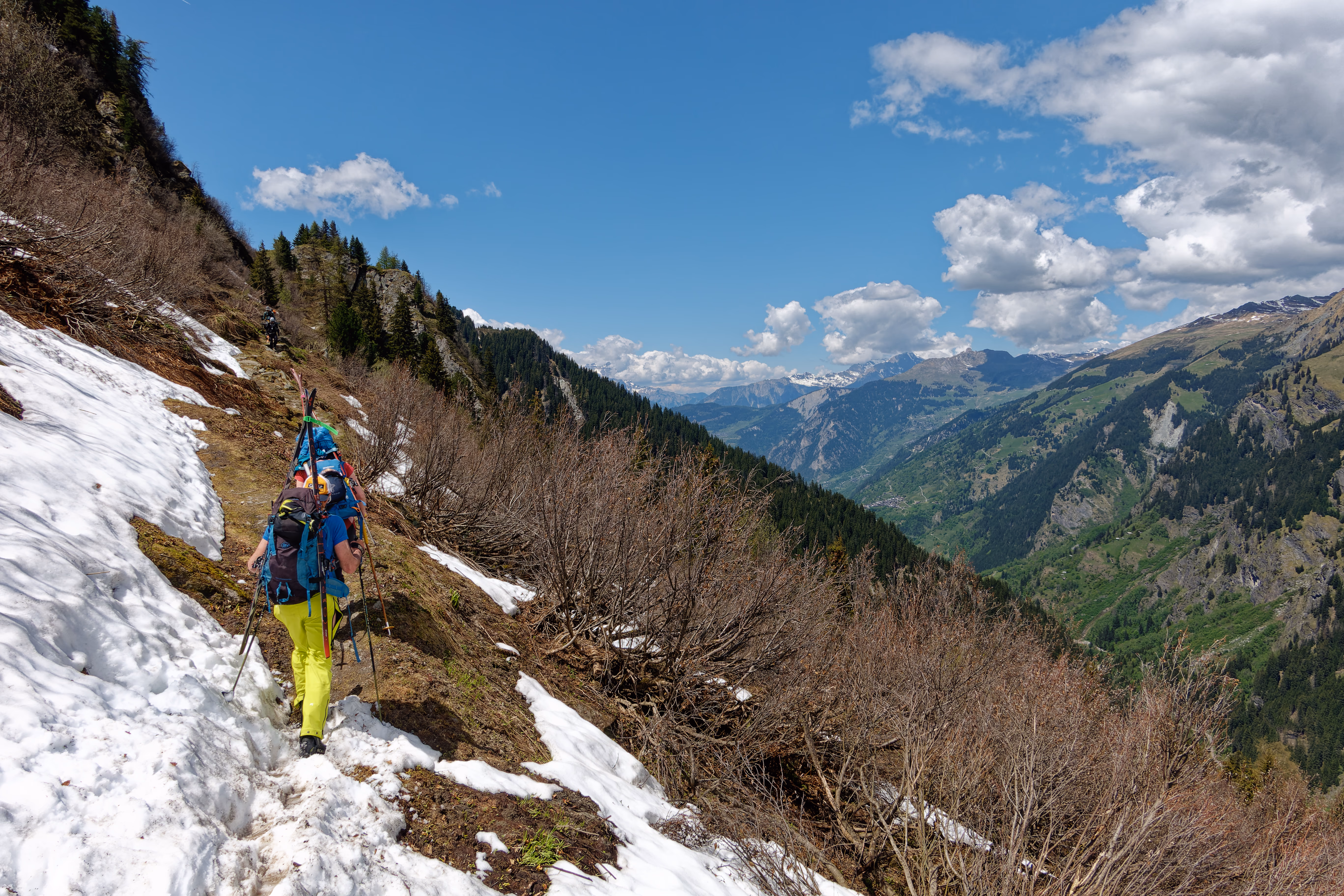 A rendere tutto ancora più speciale è stata la presenza di un gruppo collaudato di amici, tutti appassionati di montagna come me. Condividere l’esperienza con loro ha reso la salita non solo più sicura, ma anche più bella, fatta di intesa, risate, silenzi e sguardi che non hanno bisogno di parole. Partiamo da Fionnay, dove facciamo un po’ di fatica a trovare un posto per l’auto. Fortunatamente due proprietari di una baita ci lasciano parcheggiare davanti alla loro proprietà: davvero gentili. Carichi come muli, iniziamo la nostra salita con gli sci in spalla.